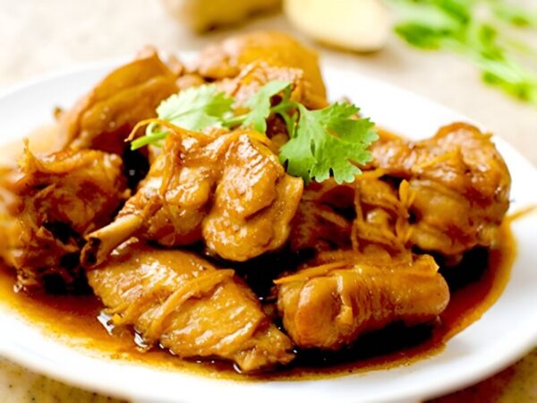 Gà kho gừng là món ăn ấm nóng, đậm đà, mang hương vị truyền thống quen thuộc trong bữa cơm Việt. Thịt gà tươi chắc ngọt được ướp cùng gia vị, kho chung với những lát gừng vàng thơm cay nhẹ, tạo nên mùi hương nồng nàn khó quên. Khi kho, từng miếng gà thấm đẫm vị mặn ngọt hài hòa, vừa mềm vừa săn, quyện cùng vị cay ấm đặc trưng của gừng, giúp kích thích vị giác và giữ ấm cơ thể. Nước kho sóng sánh, chan lên cơm trắng nóng hổi cực kỳ đưa cơm. Đây là món ăn dân dã nhưng tròn vị, vừa ngon miệng vừa tốt cho sức khỏe, đặc biệt thích hợp trong những ngày mưa lạnh.
