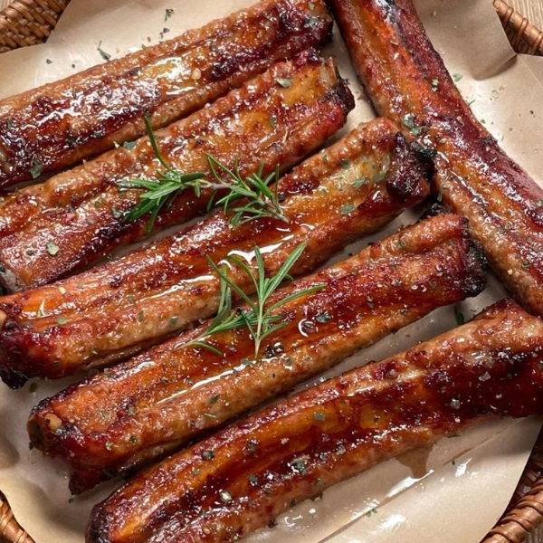 Sườn nướng là món ăn đậm đà hương vị, được chế biến từ những dẻ sườn non tươi ngon, thịt mềm xen chút gân mỡ tạo độ béo ngậy vừa phải. Sườn được ướp kỹ với gia vị truyền thống, hòa quyện giữa vị mặn ngọt của mật ong hoặc đường thắng, mùi thơm của tỏi, hành, sả và chút tiêu cay nồng. Khi nướng trên than hồng, từng miếng sườn tỏa hương thơm lừng, lớp ngoài cháy cạnh vàng óng, bên trong vẫn mềm ngọt, thấm đều gia vị. Cắn một miếng, vị ngọt tự nhiên của thịt quyện với lớp sốt đậm đà khiến ai cũng khó cưỡng. Món ăn này khi dùng kèm cơm trắng nóng hổi, rau sống và dưa chua sẽ tạo nên hương vị cân bằng, hấp dẫn và no trọn vị.